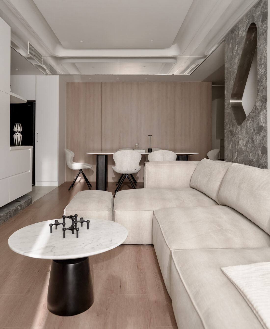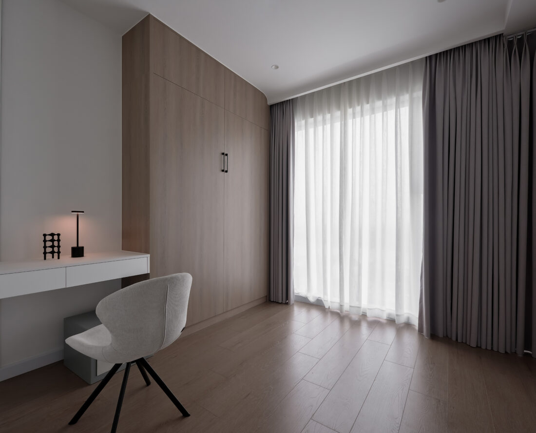 Bảng màu trung tính kết hợp vật liệu gỗ mang lại cảm giác ấm áp, sang trọng và dễ thích nghi với nhiều giai đoạn sống khác nhau.